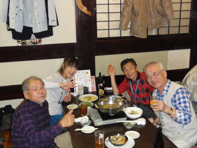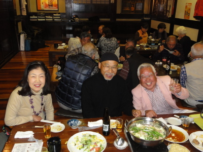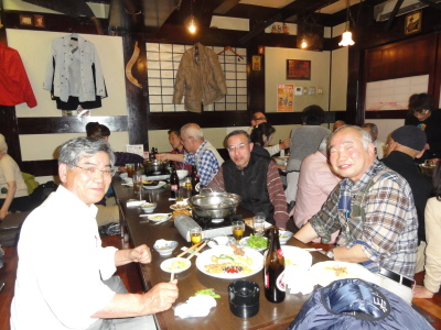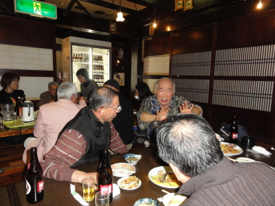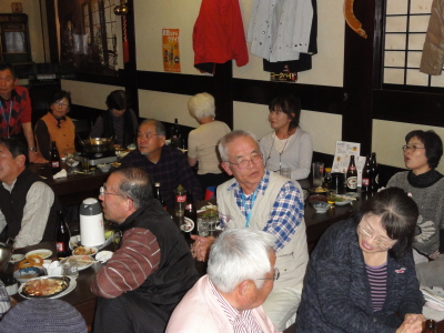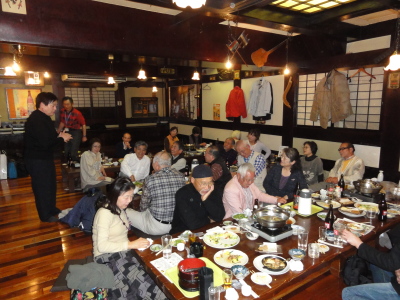 情報交換会終了後はいつもの「ひゃくしょう茶屋」で懇親会。26名の参加で盛り