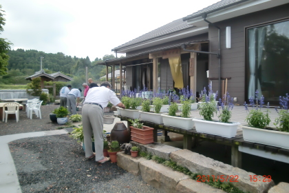 | 建物の周囲は鉢植えがいっぱい!水やりも大変です。 | 歓迎を受けています。 |
