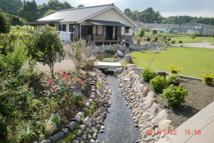 | 家のそばにきれいな川が流れています。 | こんな感じでバーベキューのセットができていました |