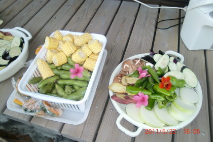 | 野田さんと阿部ちゃんはバーベキューのプロ | 庭に咲いている可憐な花を野菜に載せてトロピカル風? |
