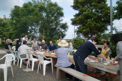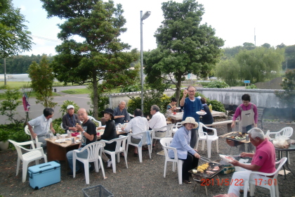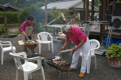 午後3時に現地集合ということにしていましたが、1月入会の鹿児島・鹿屋在住の野田さんは12時頃には到着して、みんなが集合した時にはすっかりバーベキューのセットを準備していただいていました。
