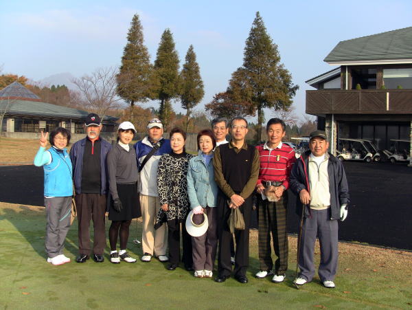 秋晴れでもPM2.5が少し気になる11月7日~8日、阿蘇を望む標高900mのリゾートゴルフ場で九州支部ゴルフサロン会を開催しました。